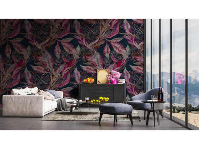 Product Code: Pink Leaves on Blue Background